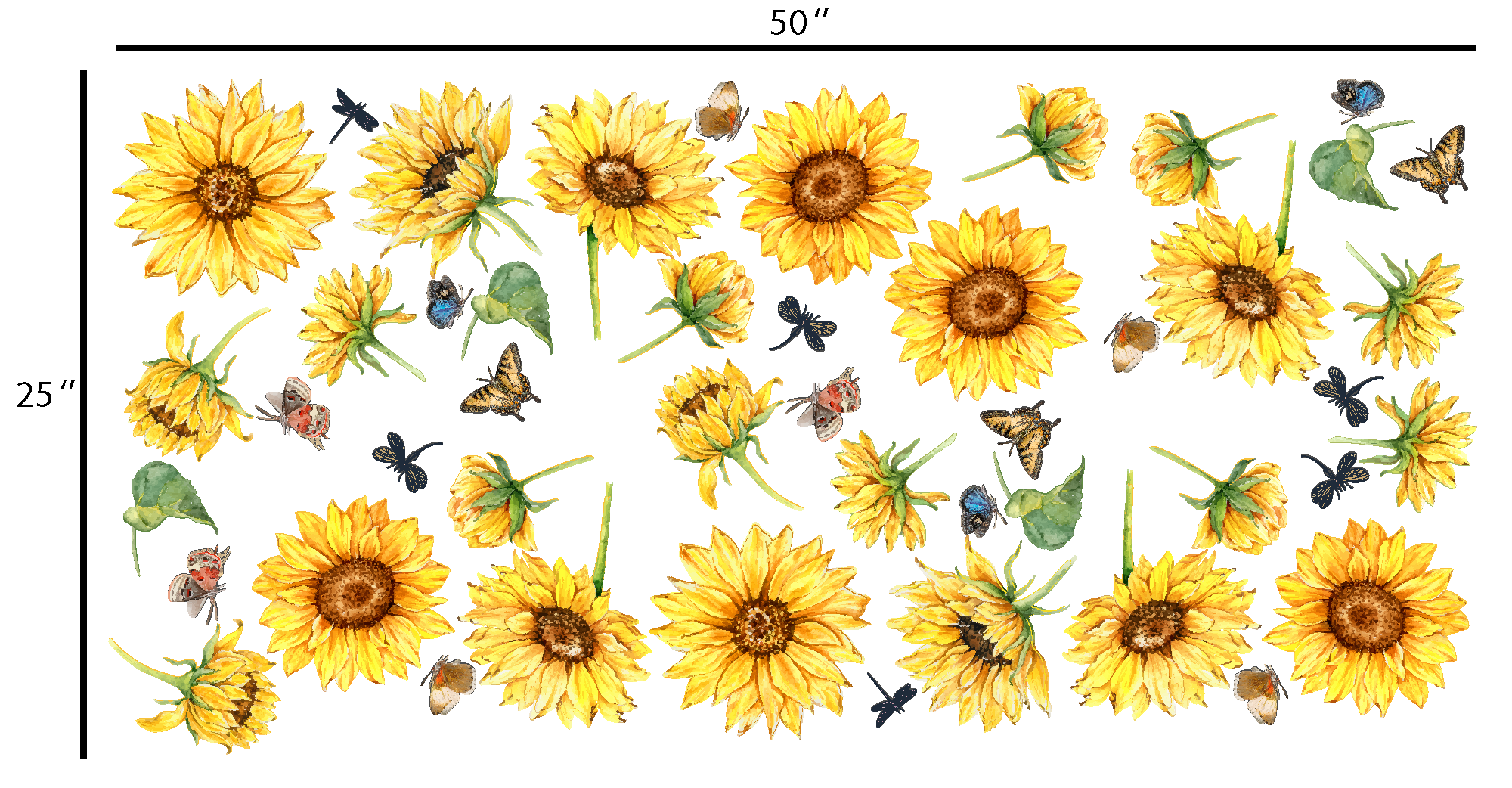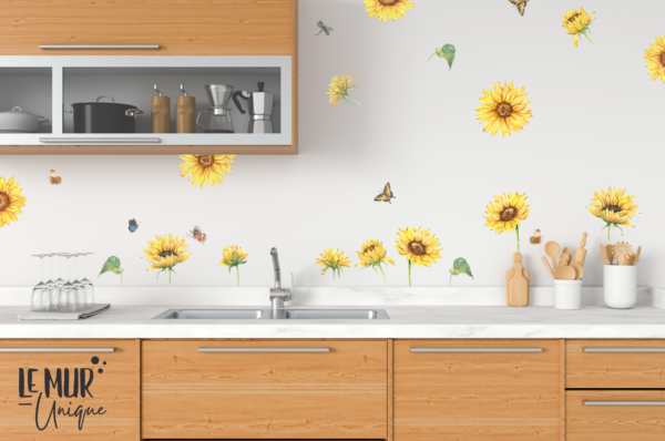 Autocollants muraux de fleur de tournesol mesurant chacun de 6 à 9 pouces chacune.