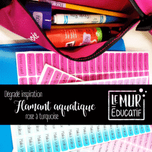 - Étiquettes autocollantes PRÉNOM et NOM dégradé de couleurs FLAMANT AQUATIQUE pour identifier avec style!