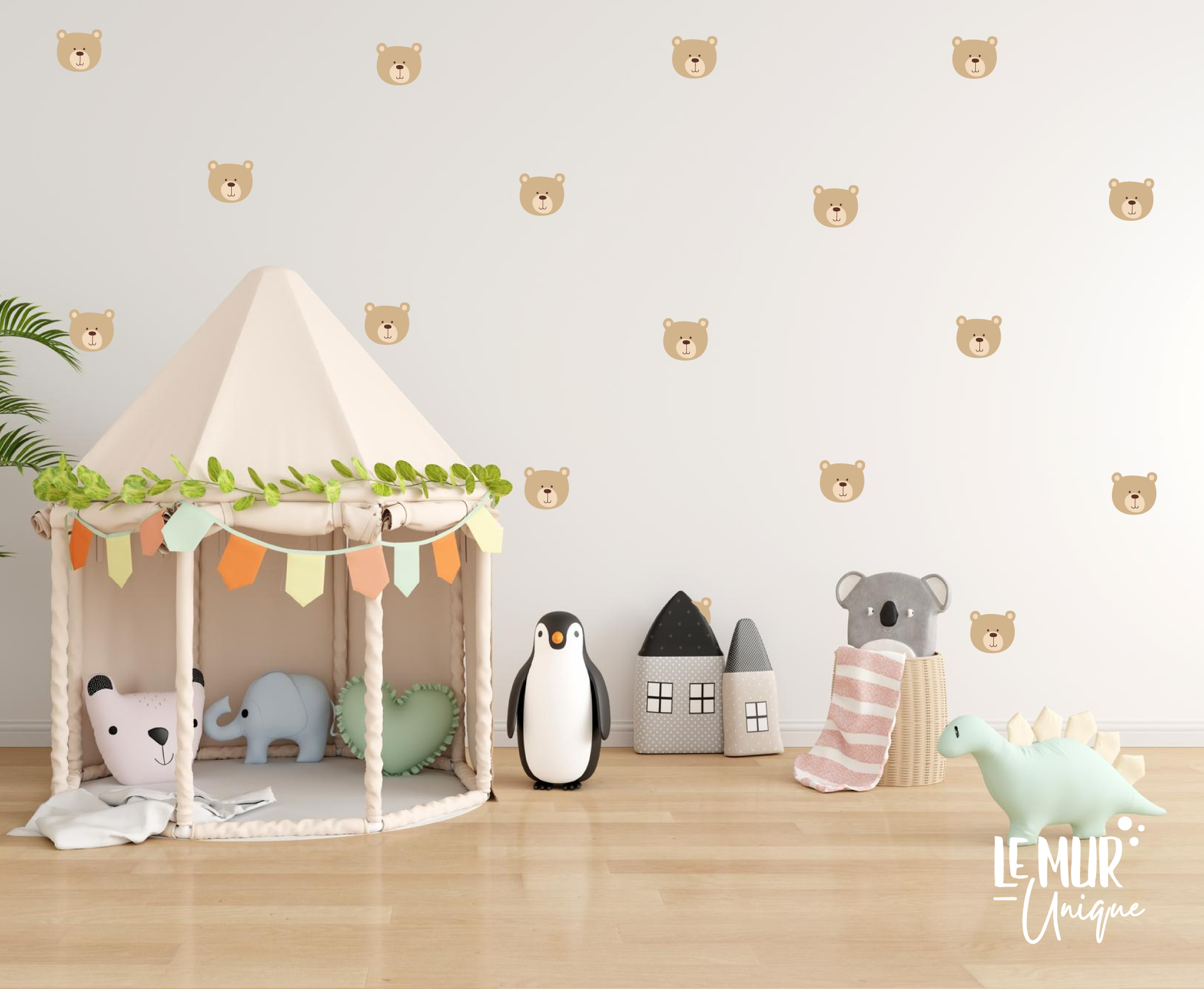 Autocollants muraux en forme d’oursons à placer à sa guise, laissez aller votre imagination pour créer votre mur au design unique!