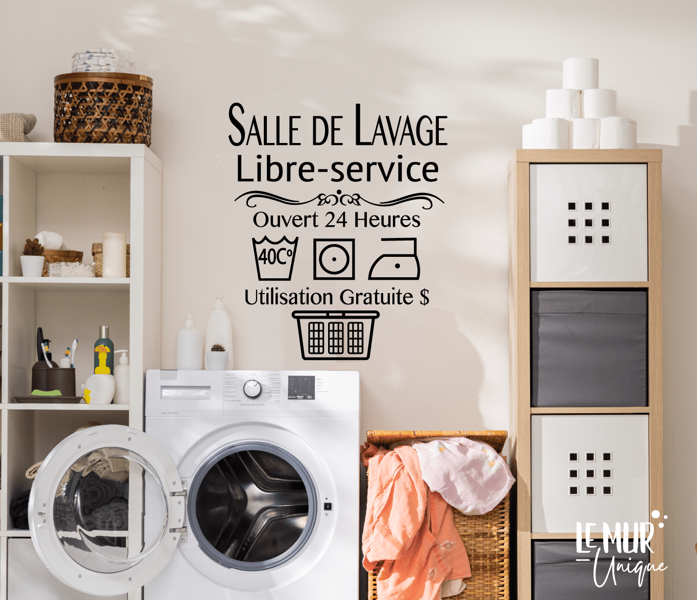 Toujours un service impeccable et des produits de qualité. On adore ce modèle de texte pour notre coin salle de lavage. Merci Le Mur!