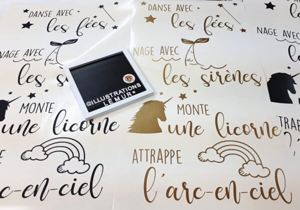 Décalque mural fantastique danse avec les fées, nage avec les sirènes, monte une licorne, attrape l’arc-en-ciel!