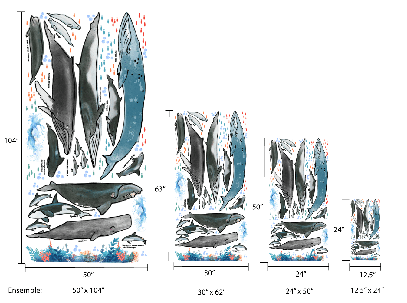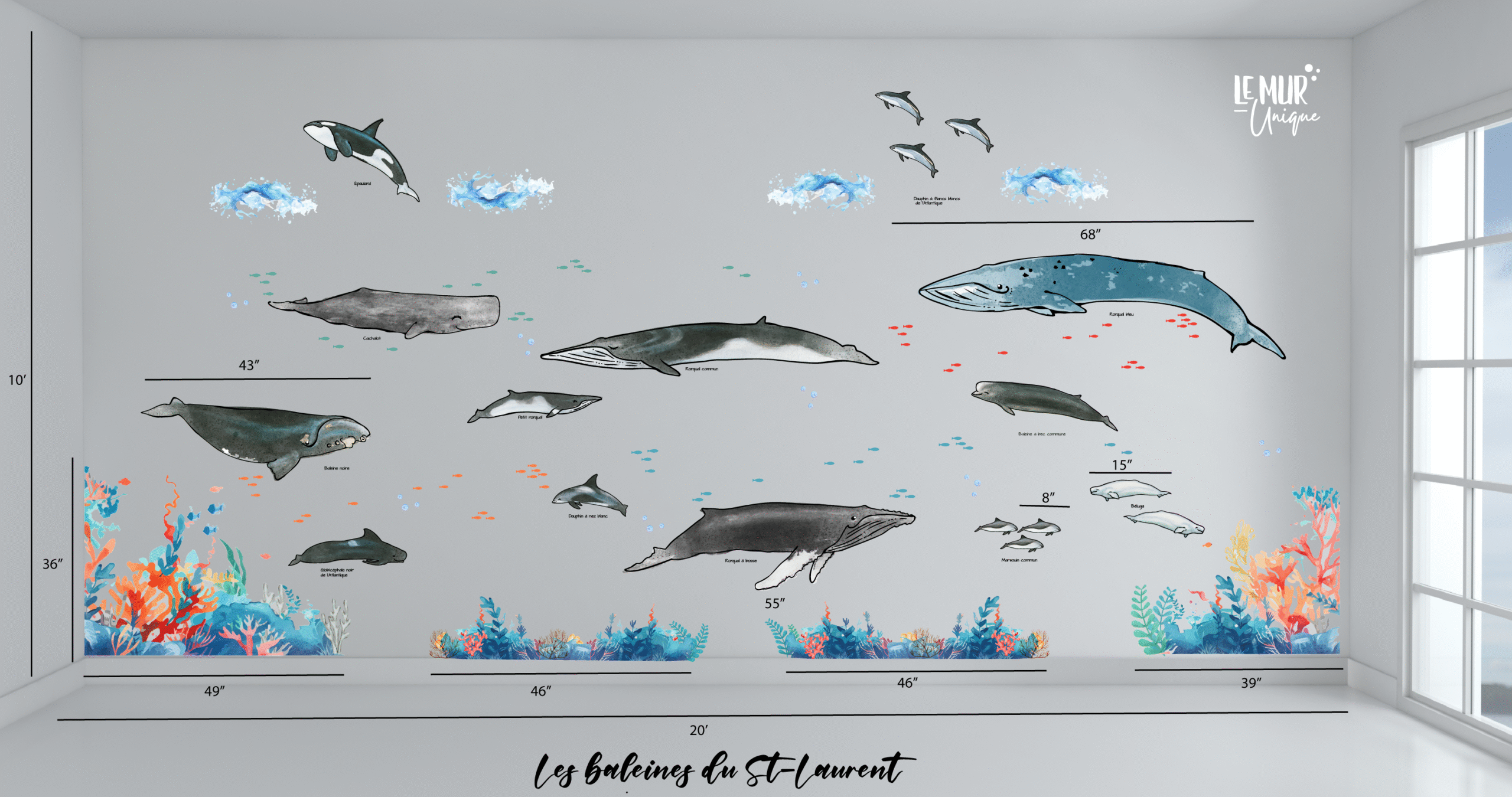 Les décalques autocollants muraux des baleines du St-Laurent sont idéals pour les amoureux des animaux marins!