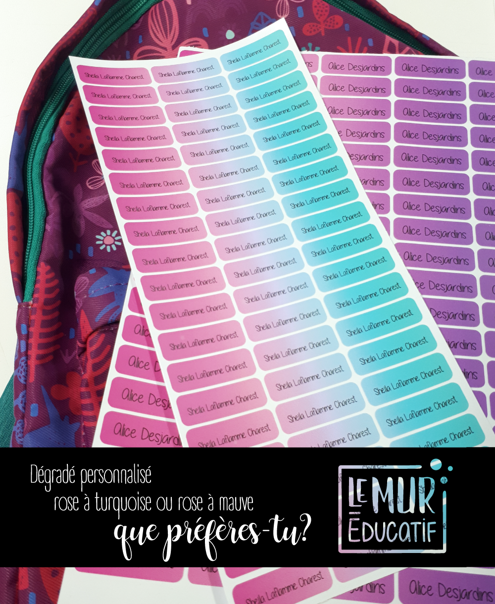 Ils sont parfait pour identifier les duo-tang, cartables, cahiers à anneaux, crayons de feutre et marqueurs, stylos, la gomme à effacer… les gourdes et plats de lunch…