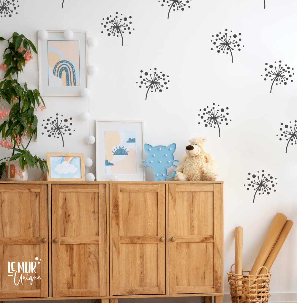 Les autocollants muraux de fleurs de Bengale sont des pissenlit montées en graine à placer à sa guise,