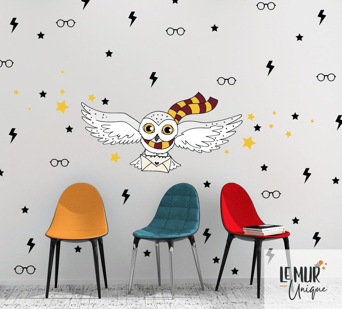 Ces autocollants muraux d’un joli harfang portant un foulard au couleur populaire d’une série bien connu plaira aux enfants comme aux adultes!