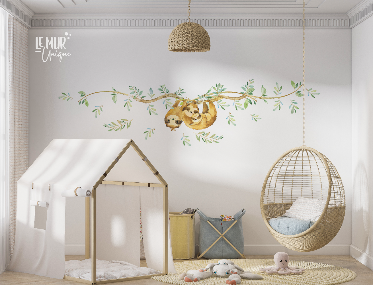 Magnifiques autocollants muraux de la plus mignonne des familles de paresseux pour un décor empreint de douceur.