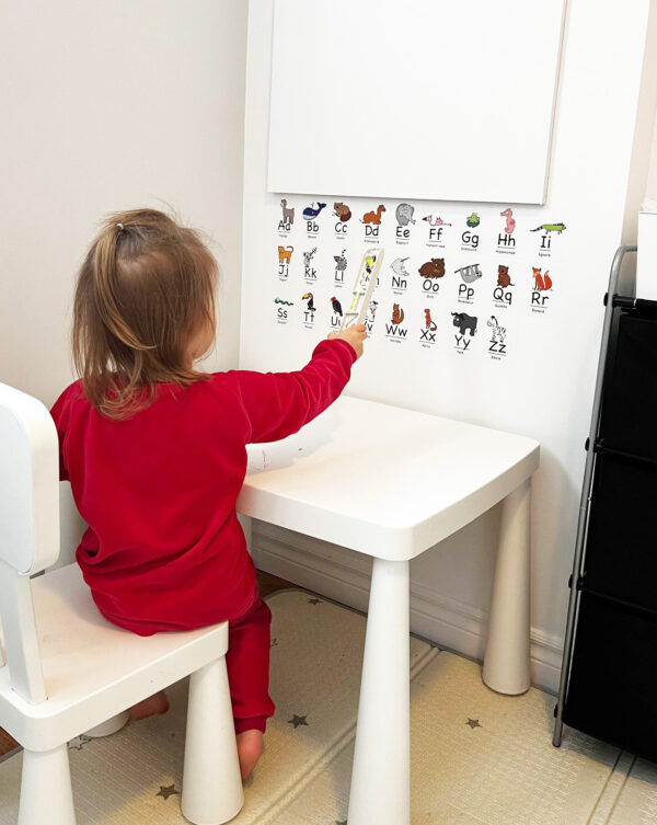 Les autocollants muraux » L’alphabet des animaux » est parfait pour être installé dans la chambre, la salle de jeux, la classe ou le local à la hauteur des enfants!