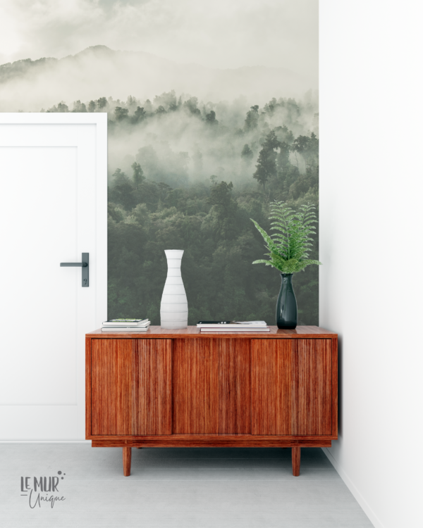 La murale montagne de sapins brumeux transformera n’importe quelle pièce en un espace unique!